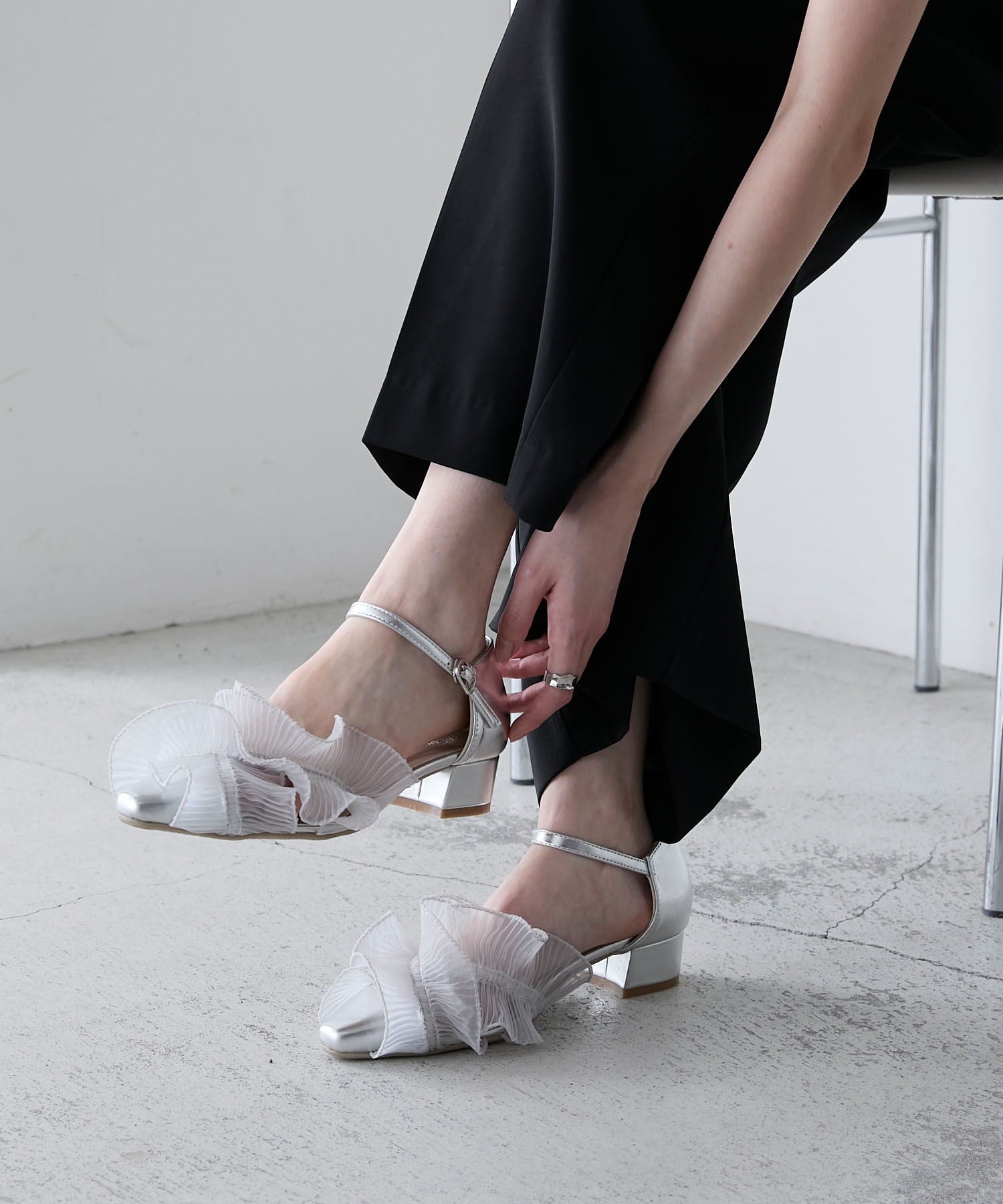 コーデのアクセントにぴったりなシアーフリルパンプス。