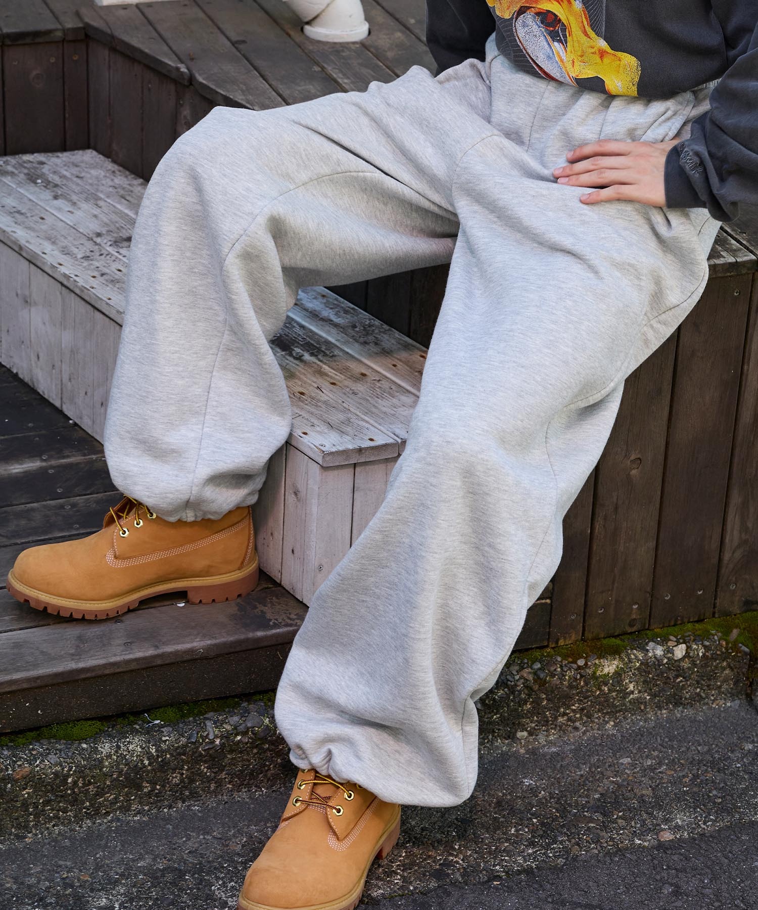 タックを効かせた立体的なシルエットが魅力的なドロストワイドストレートスウェットパンツ
