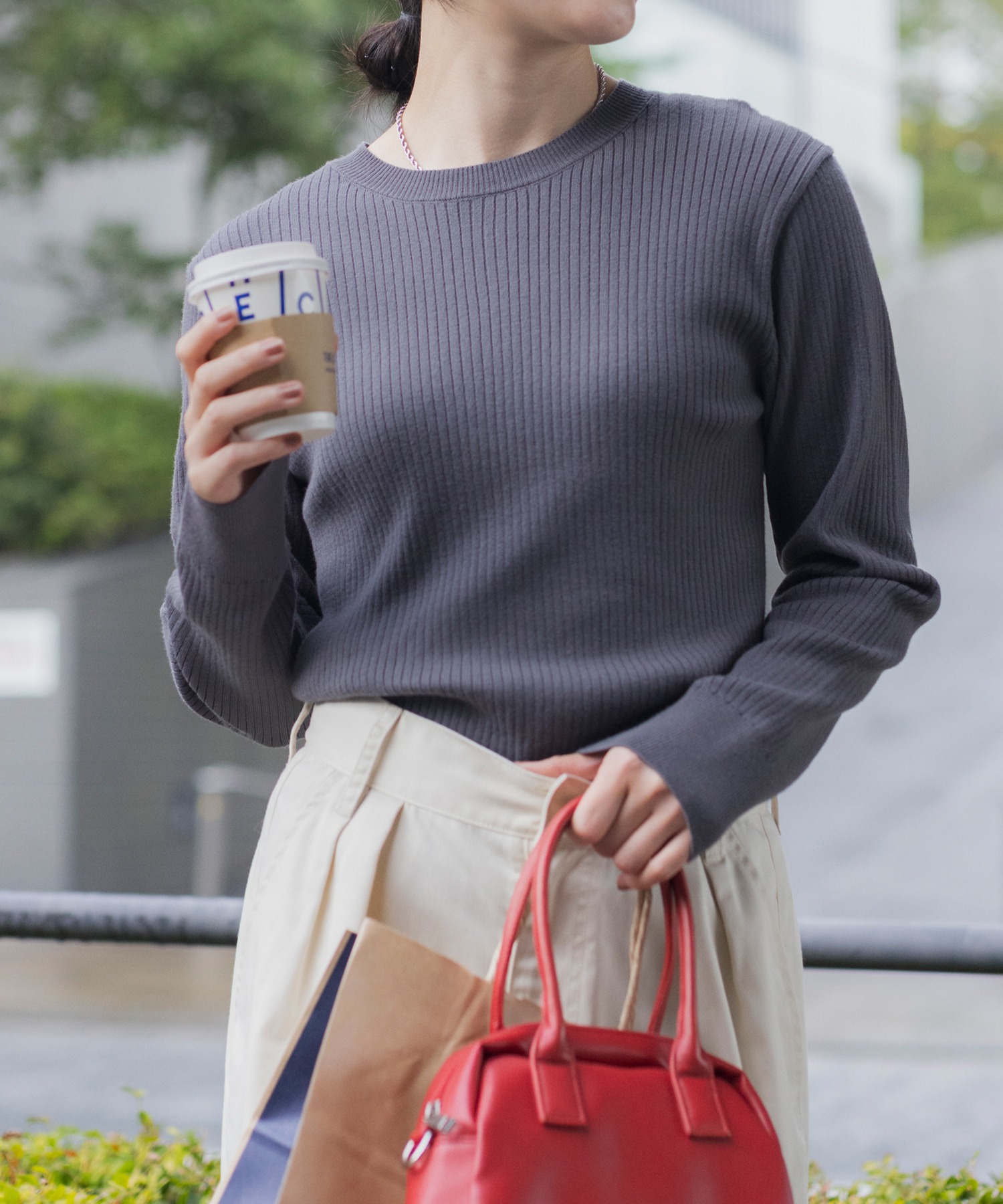 ぴたっとしすぎないリブ感で、スッキリ細見えするシルエットです。