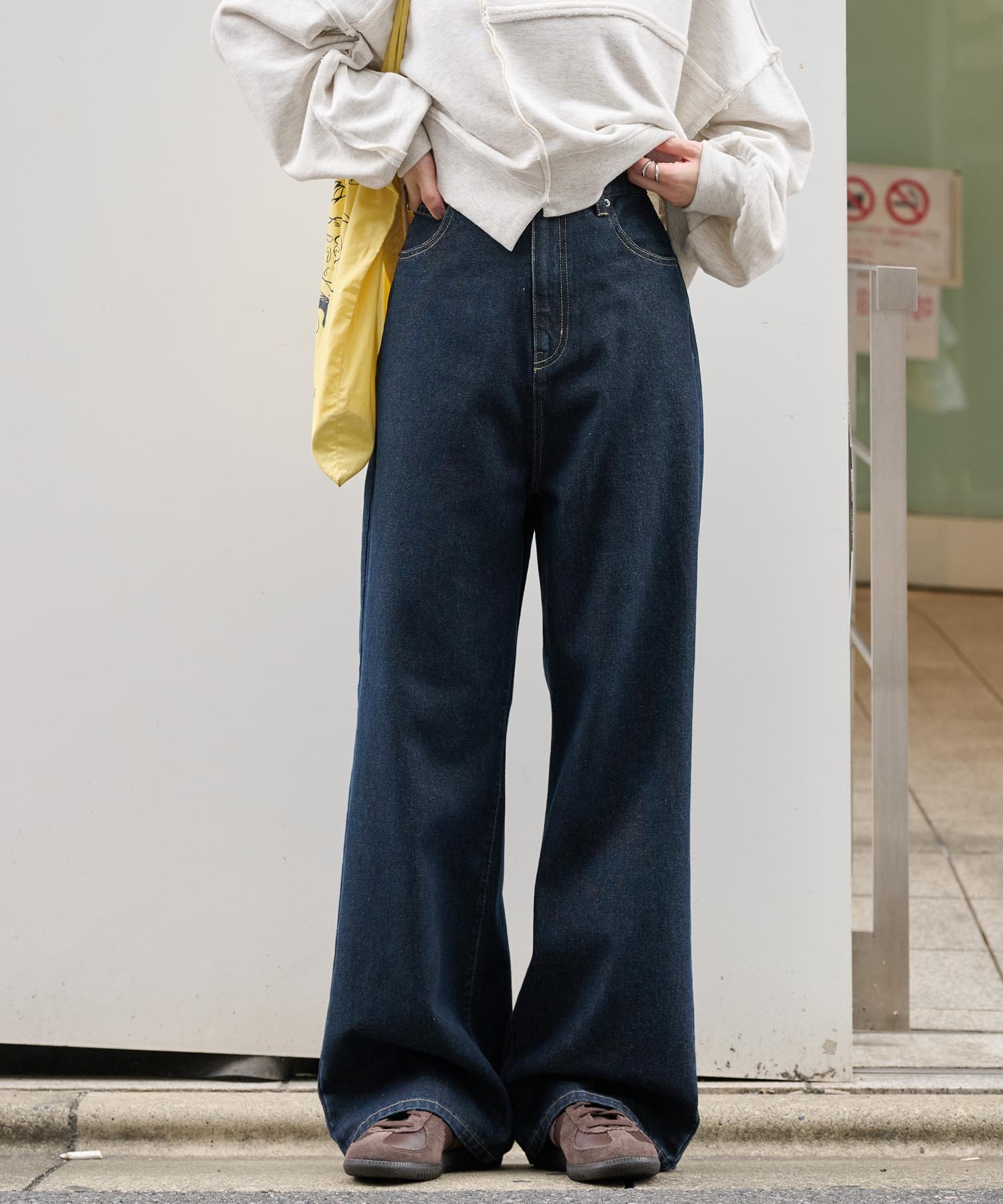 足元はスニーカーからパンプス、ブーツにも合わせやすく、アクセやバッグで季節感を出すのもオススメです。