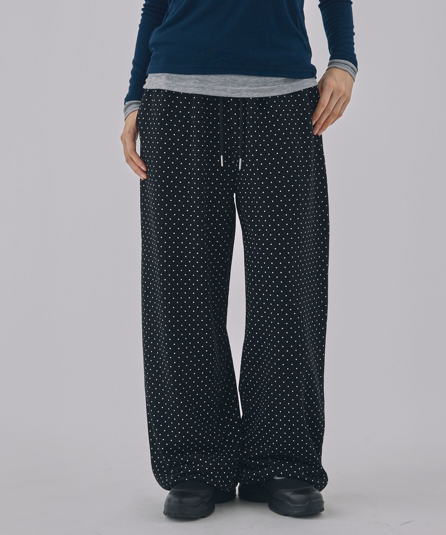 -ドットとボーダーが映えるアソートスウェットパンツ-