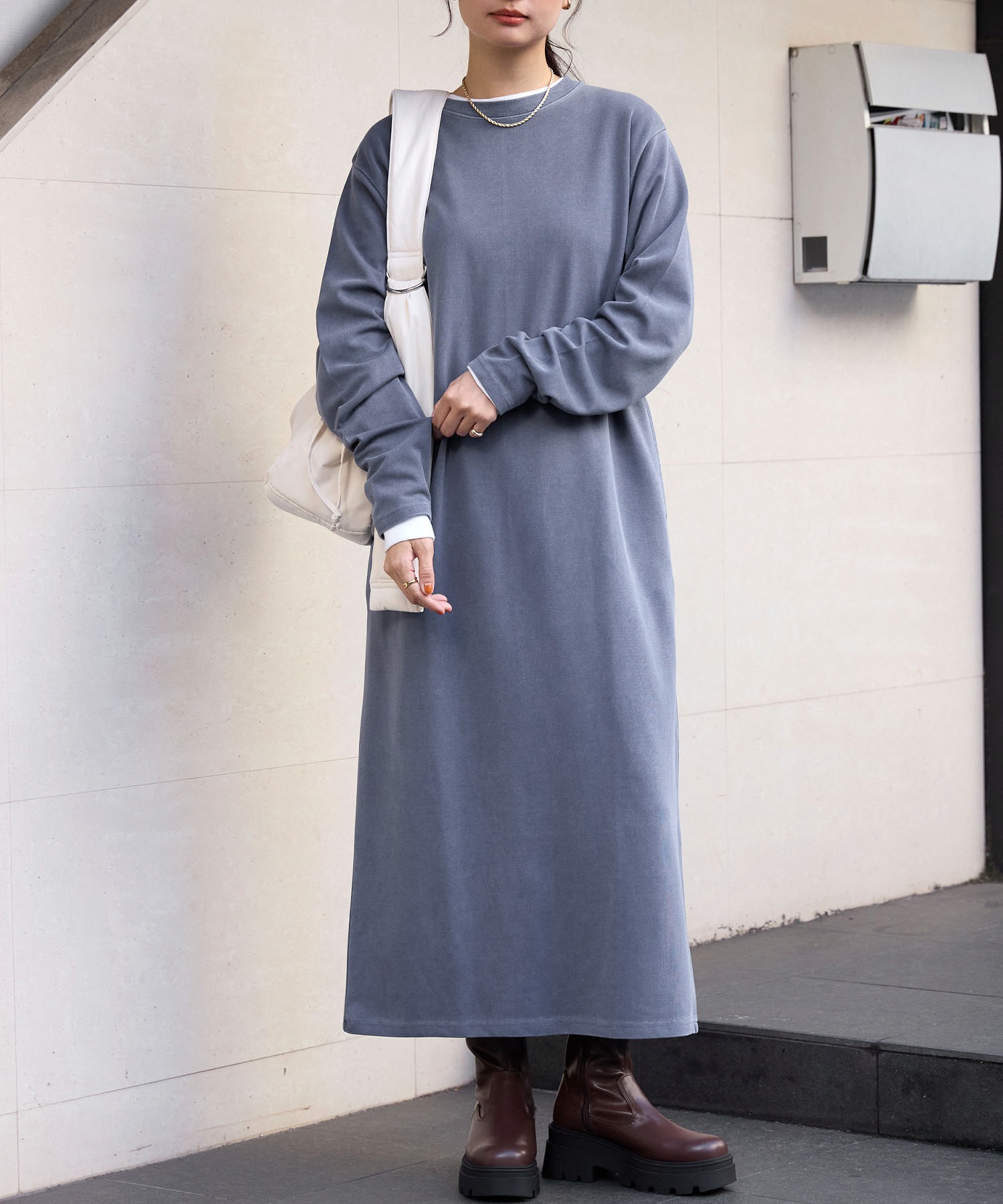 ヴィンテージ調のこなれた風合いがトレンド感溢れるロングスリットワンピース