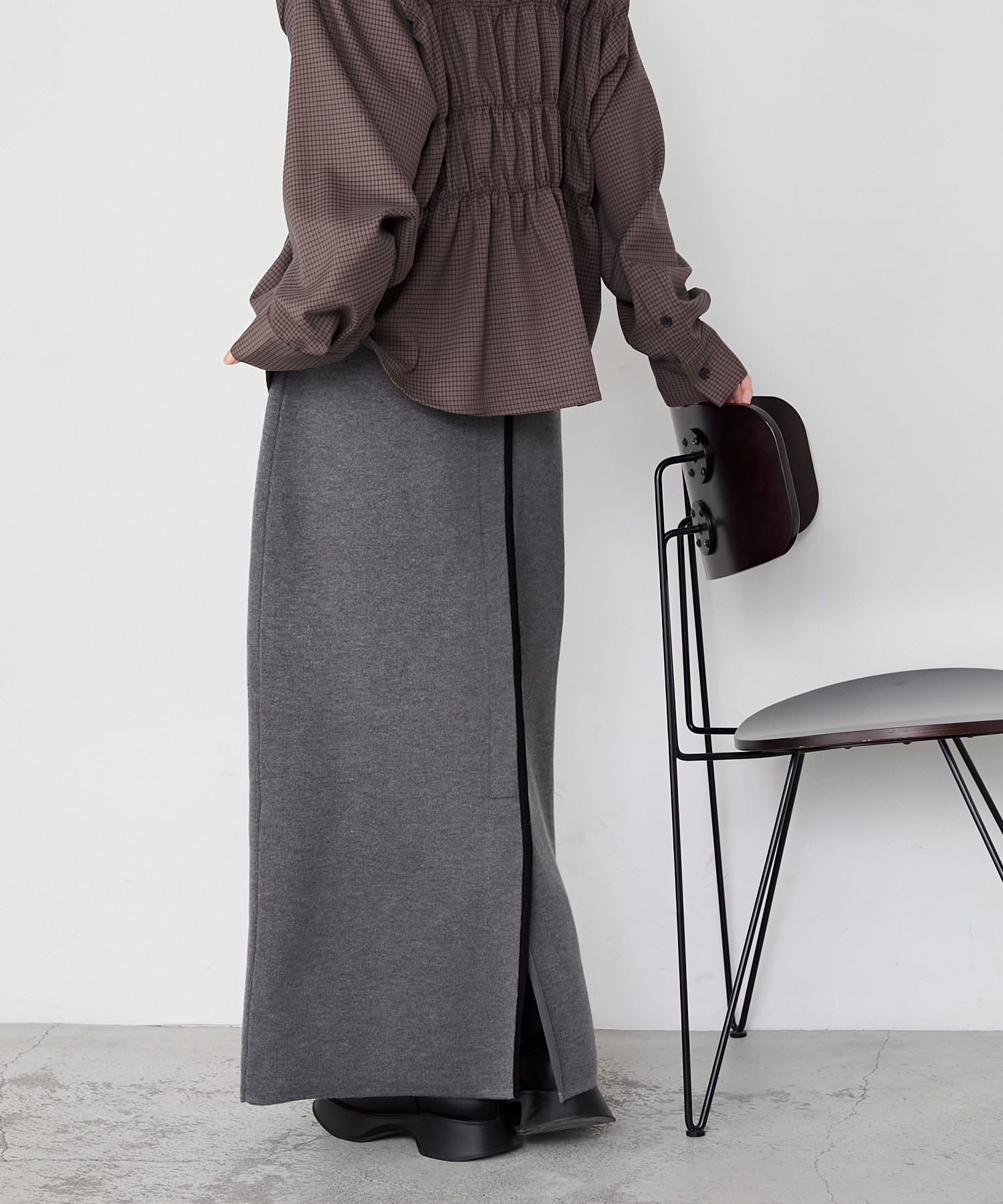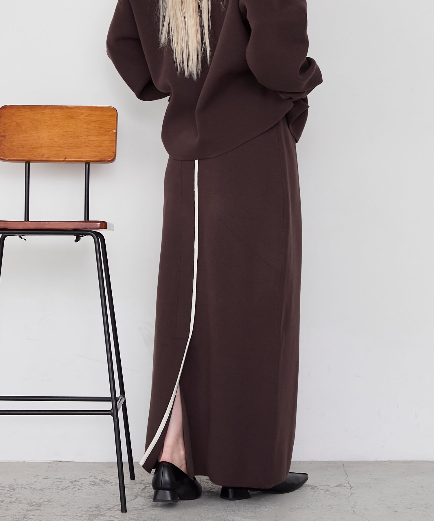 こちらのスカートは「ラガーニットプルオーバー」と上下セットアップでもお楽しみいただけます。