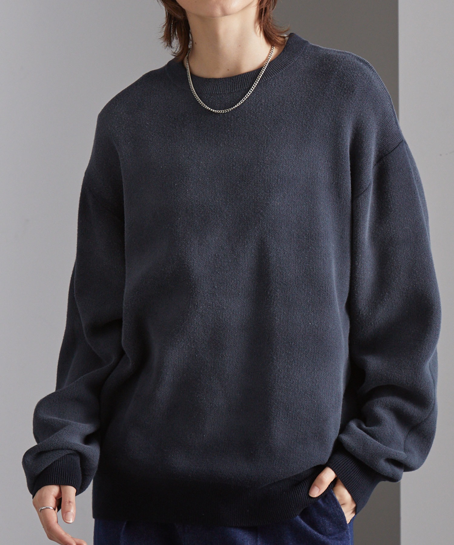 ラバースプレー加工でフェード感と奥行きのあるグラデーションをプラス。1枚でコーデが決まる長袖クルーネックニット。